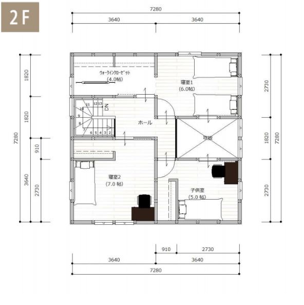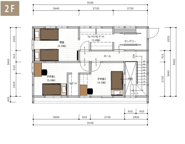 NORMEの家は「勾配天井の家」を標準としています。外観や内観の1階だけではなく、2階もワクワクする空間が広がっています。